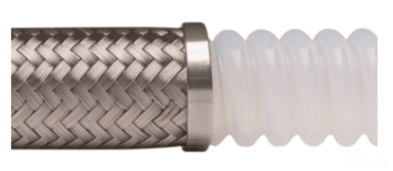 中型波紋PTFE鋼編管Convoflex?系列,食品制藥級材質,大流量設計,內部易于排水和清洗,耐高溫和低溫,耐強腐蝕,加厚的PTFE使抗滲透性加強,使用壽命延長,可用于輸送各種化學液體。適合把PTFE翻邊至接頭密封面,實現全PTFE流體接觸面,防止物料對PTFE以外物質的腐蝕風險。
